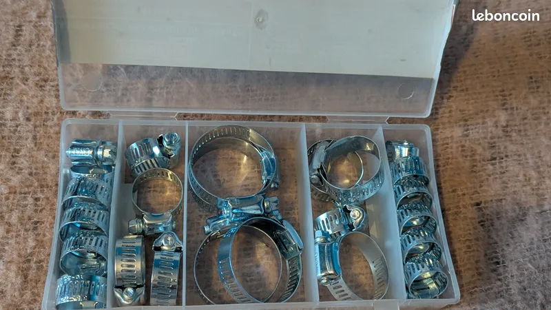 مجموعهای از ۲۶ بست شلنگ قابل تنظیم و با دوام، ساخته شده از فولاد ضدزنگ مقاوم در برابر خوردگی. شامل سایزهای مختلف برای انواع شلنگها. بستهبندی مرتب در جعبه برای دسترسی آسان.