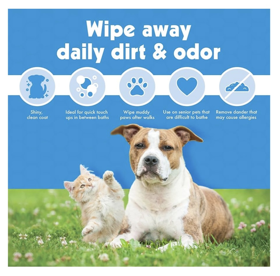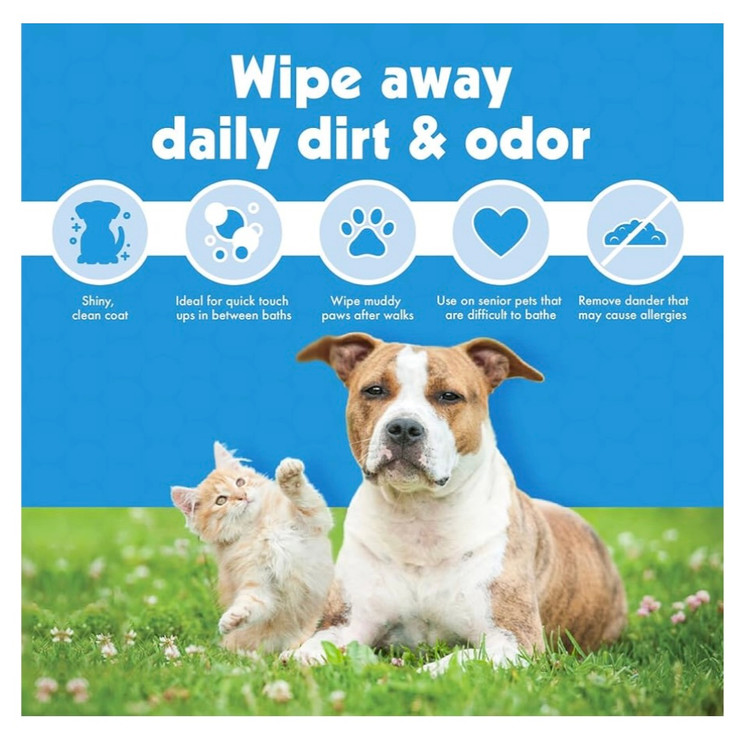 ویژگیهای خاص: ایدهآل برای تمیزکاری سریع بعد از پیادهروی، بازی در پارک یا بازگشت از فضای بیرون. · مناسب برای تازهسازی کلی بدن حیوان بدون نیاز به حمام کامل. · حل مشکل بوهای سطحی و آلودگیهای روزمره.